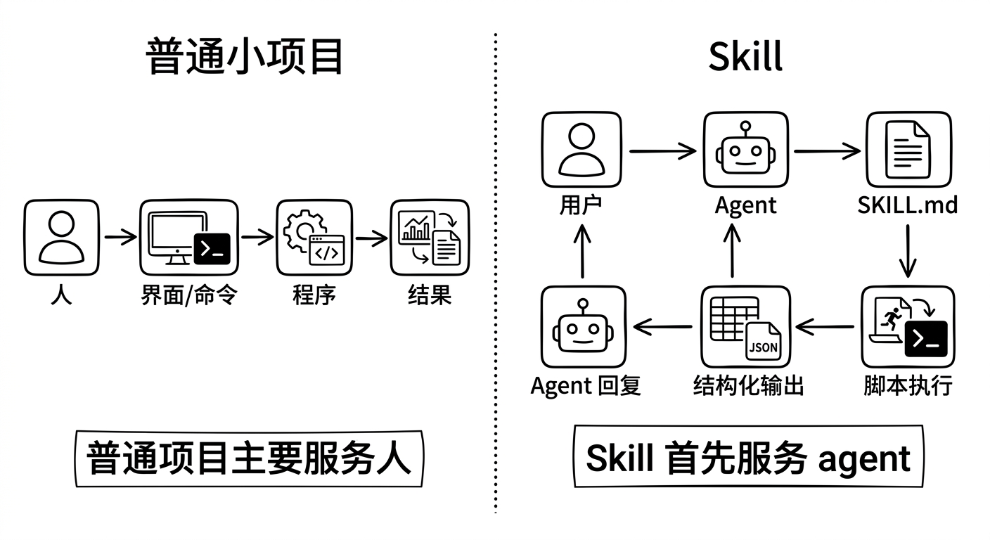 skill 和普通项目最大的区别,不在代码,而在“谁是第一使用者”。