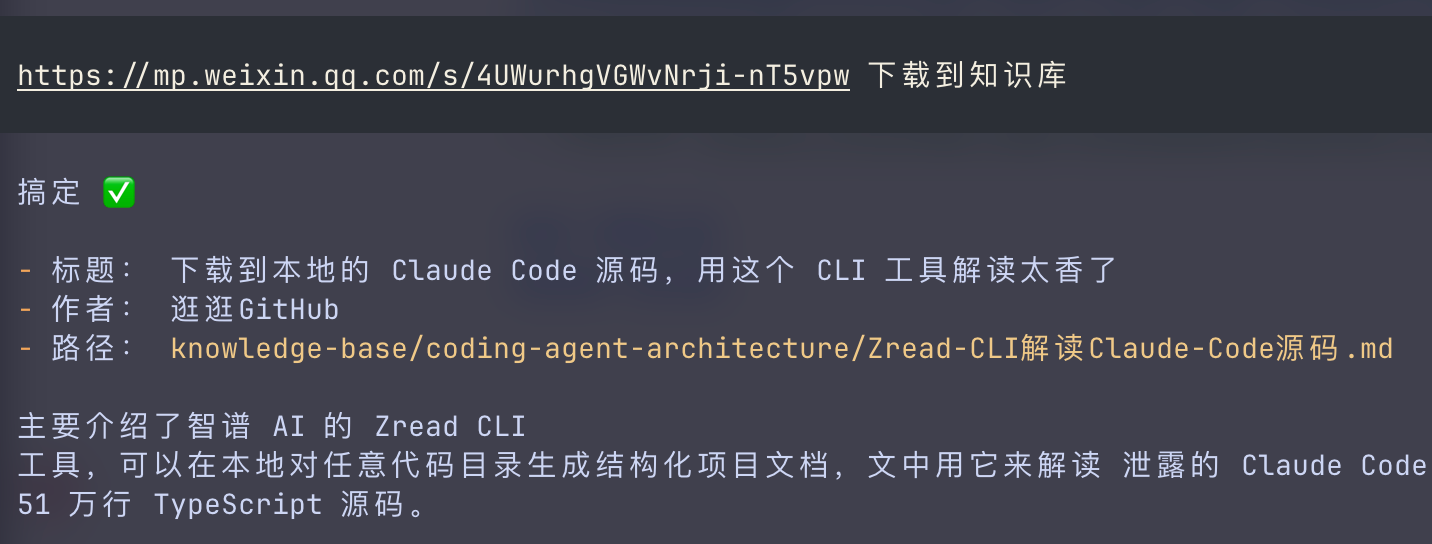 输入微信文章链接,下载内容并生成 Markdown 到知识库。
